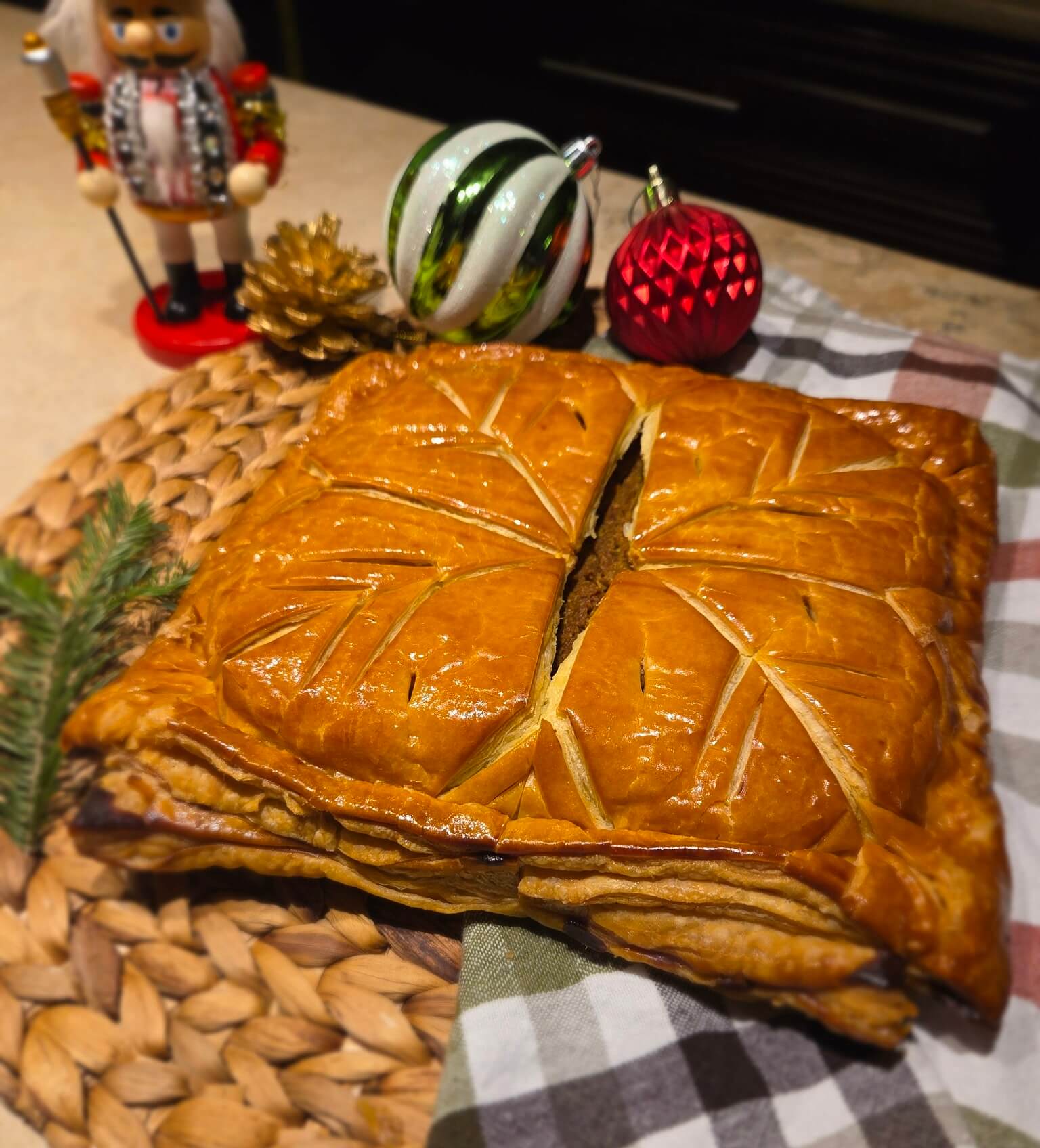 Ingredients: Pate feuilletée. Crème frangipane chocolat. Kataifi. Pâte de pistache maison. ⚠️ fèves.